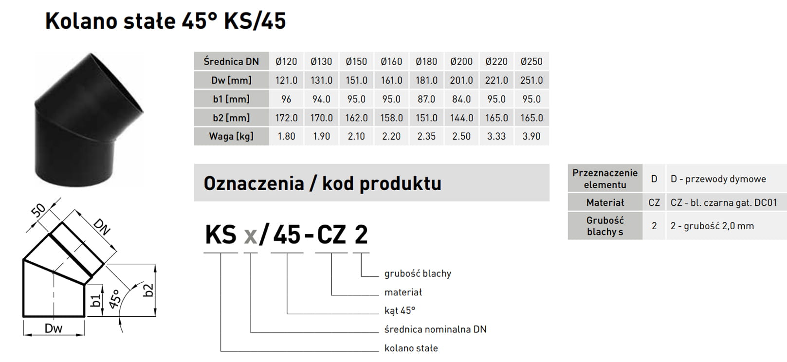 Elementy kominowe ze stali czarnej przeznaczone są do budowy przyłączy kominowych z kominków i pieców na paliwa stałe, wykonanych w całości ze stali czarnej.