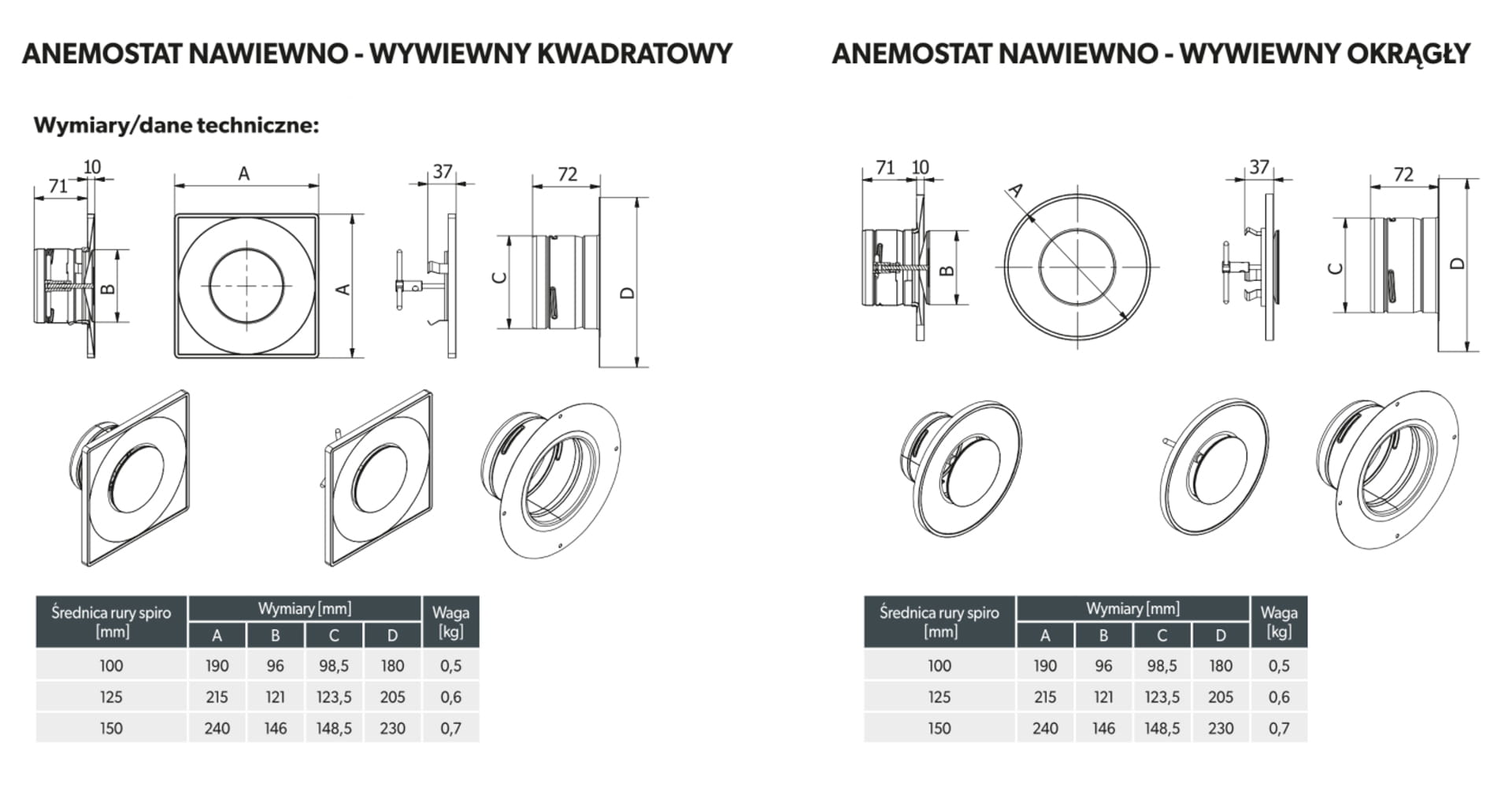 - Każdy anemostat nawiewno-wywiewny ASV w zestawie dostarczany jest z kompletną ramką montażową. Ramka montażowa z dłuższym kołnierzem pozwala na łatwy i profesjonalny montaż anemostatu.
