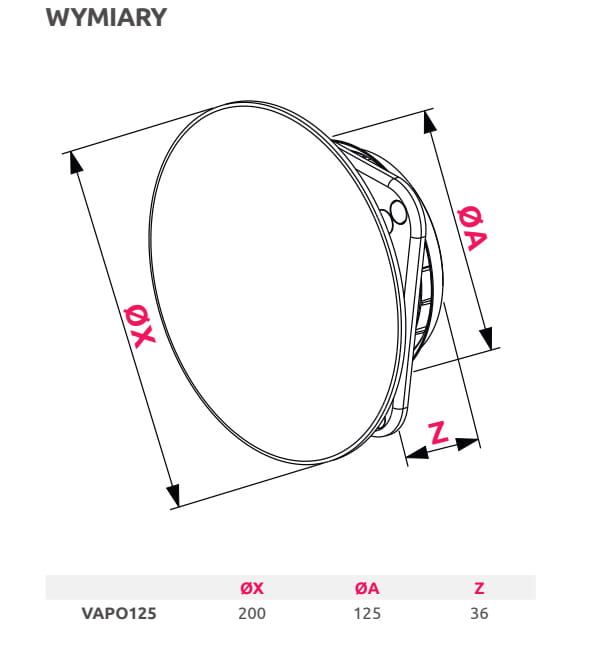 Anemostat VAPO125 wyposażony jest w panel frontowy, którego montaż i demontaż odbywa się bez użycia narzędzi.