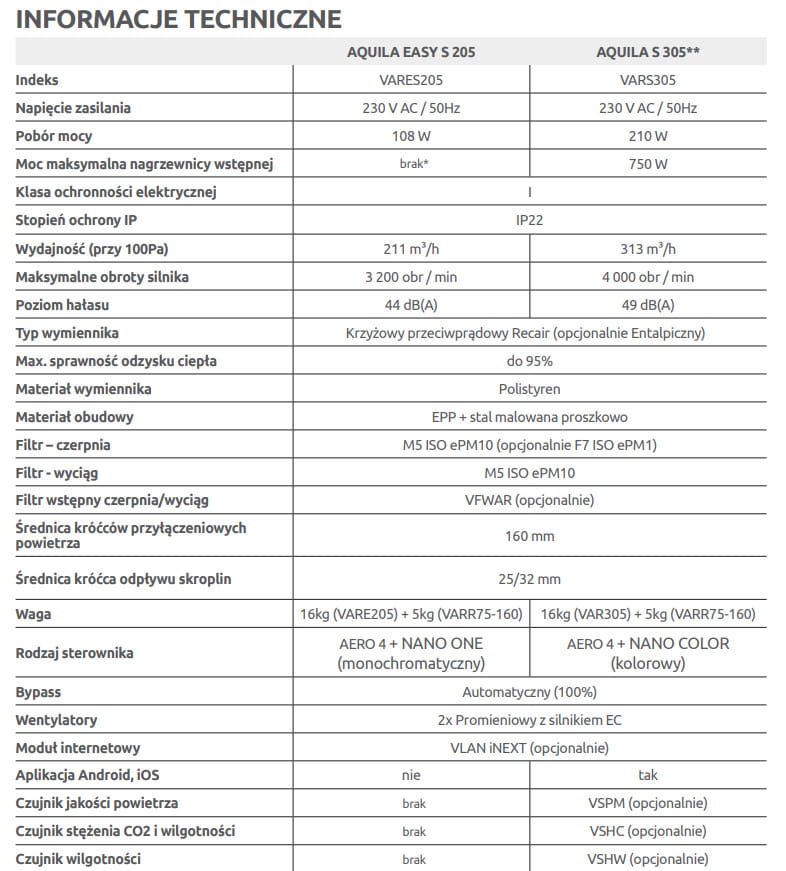 Centrale wentylacyjne Awenta Pro Aquila P 305 wersja lewa VARP305L