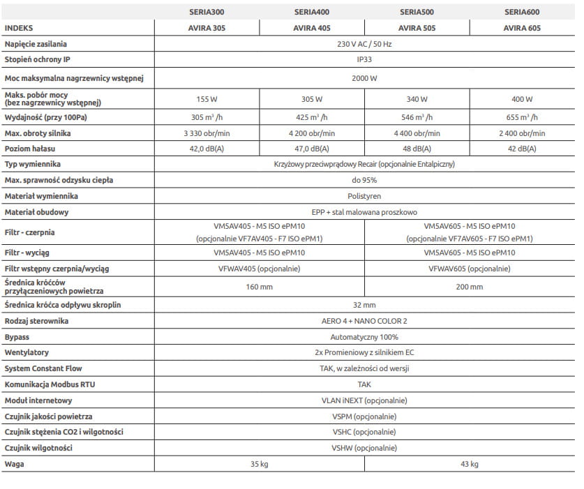 Centrale wentylacyjne Awenta Pro Avira 405 + moduł CF wersja prawa VAVP405PCF