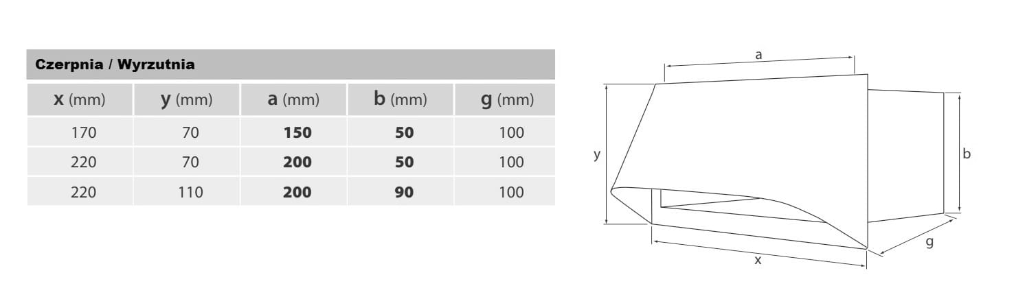Czerpnia / wyrzutnia powietrza ścienna w zależności od zastosowania przeznaczona jest do zasysania lub wyrzutu powietrza z instalacji wentylacyjnych, klimatyzacji oraz rekuperacji.