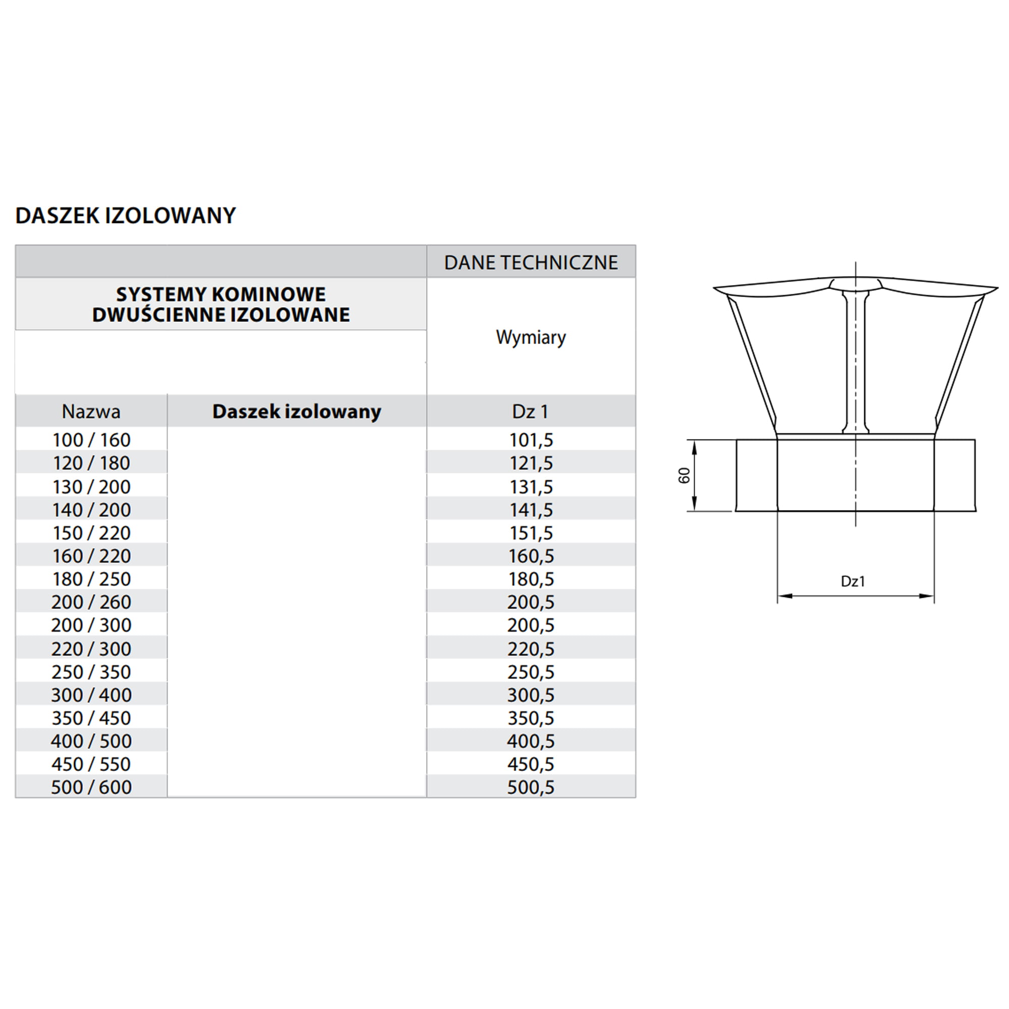 Daszek kominowy izolowany fi 160/220 kwasoodporny