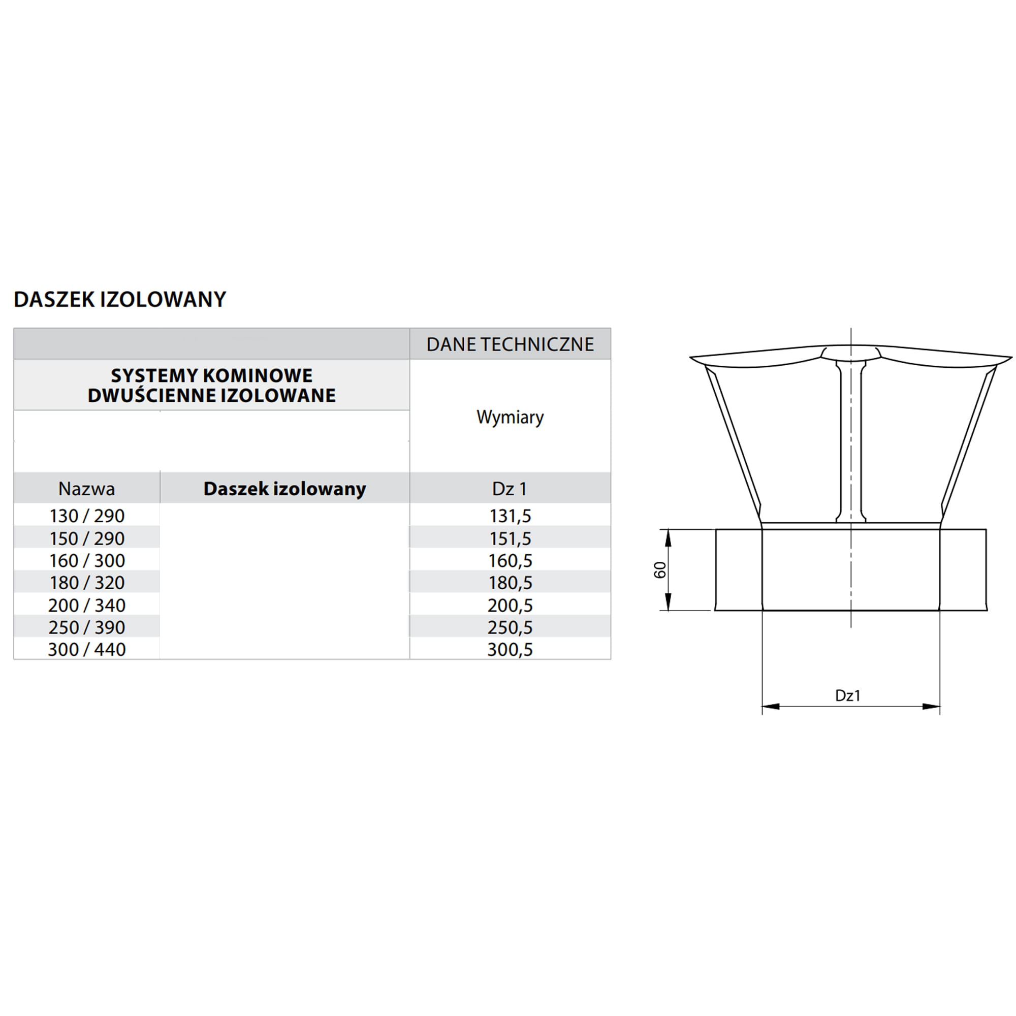 Daszek kominowy izolowany fi 250/390 żaroodporny