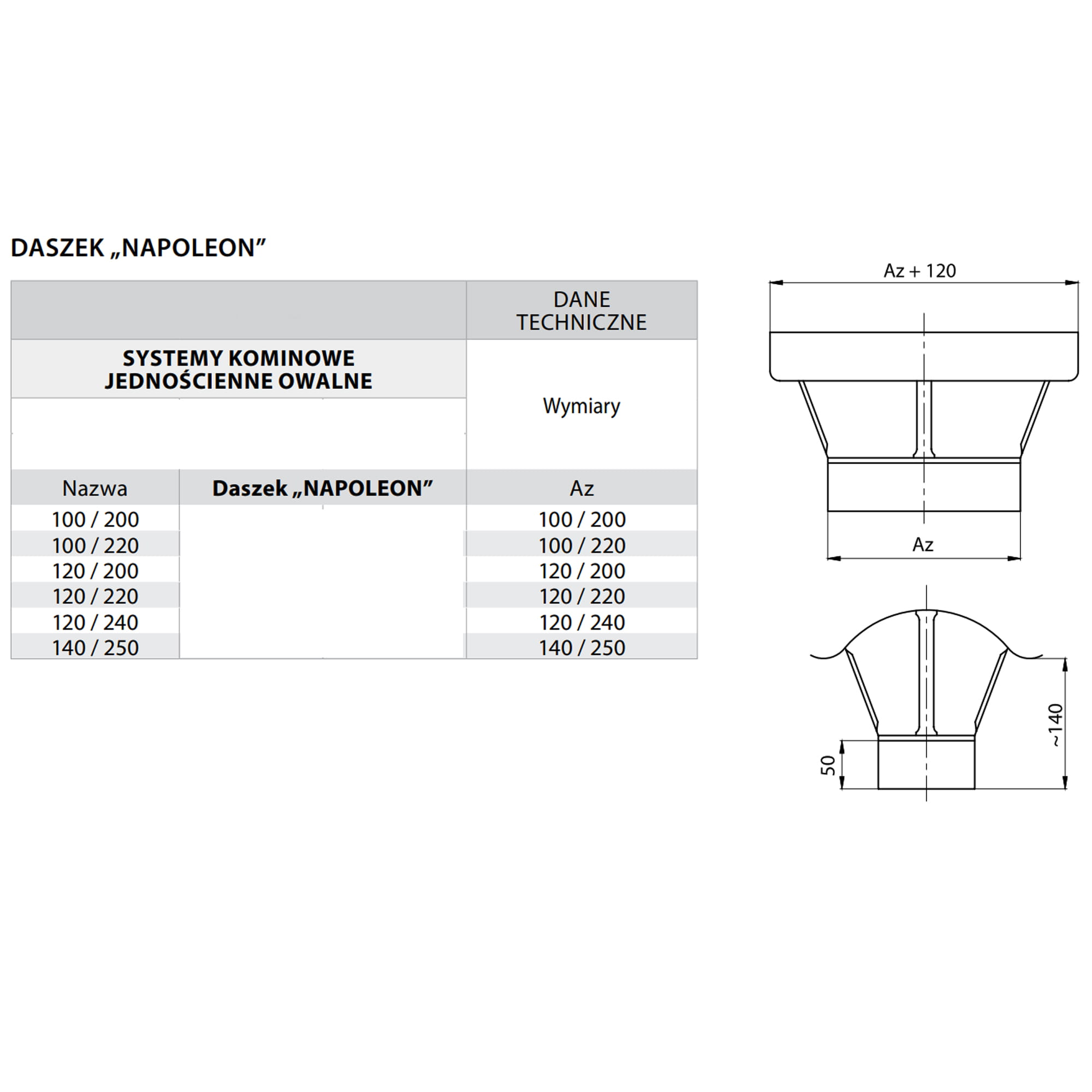 Daszek kominowy owalny Napoleon 120/200 kwasoodporny