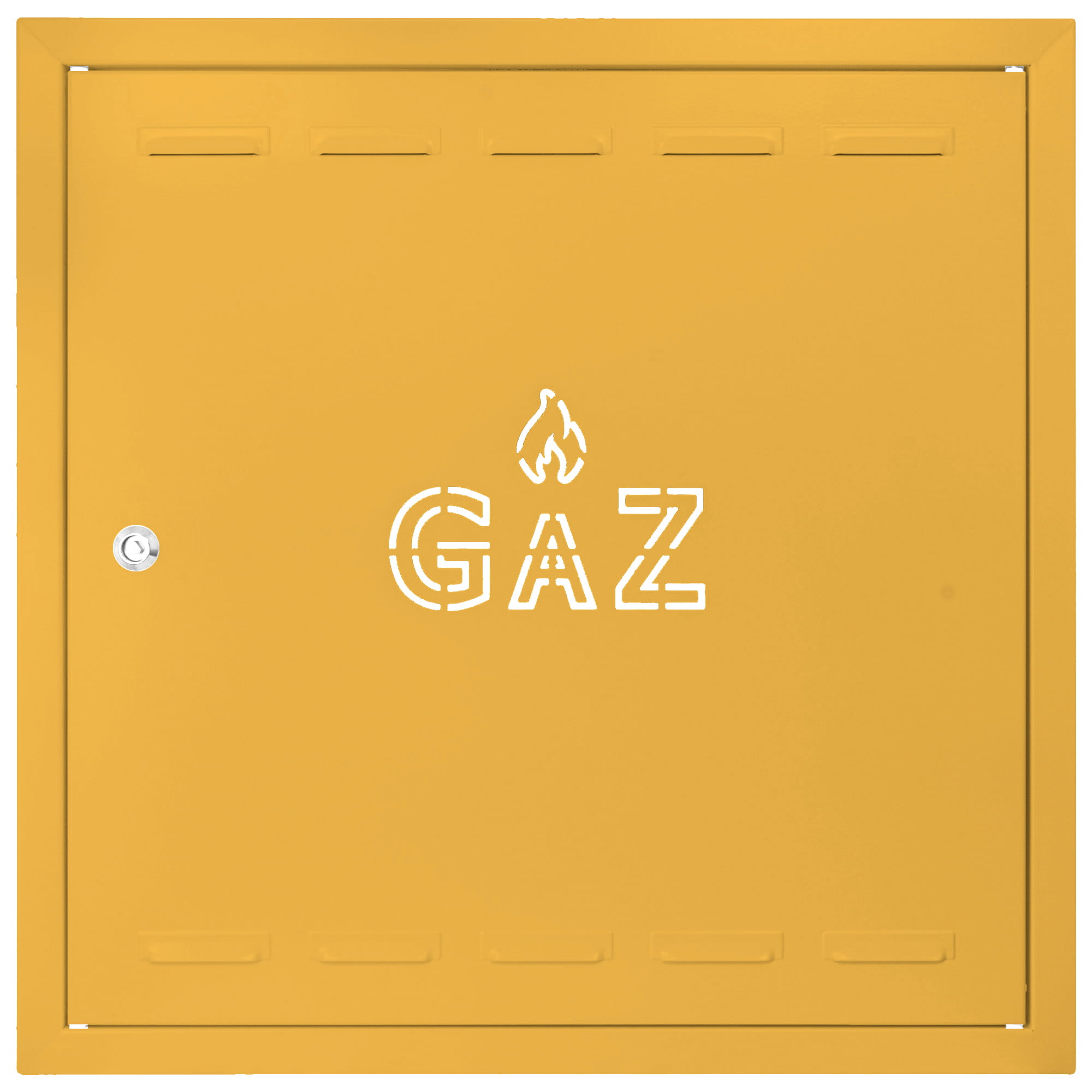 Drzwiczki gazowe 100x100 żółte z napisem "GAZ" metalowe