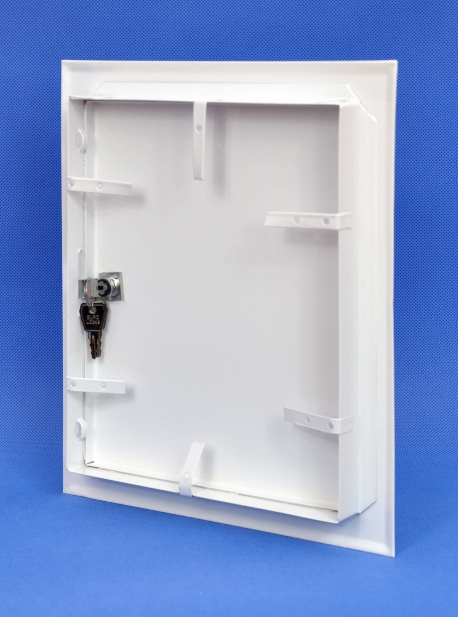 Drzwiczki posiadają zamek patentowy z dwoma kluczykami, dzięki czemu ograniczają dostęp osobą nieupoważnionym.