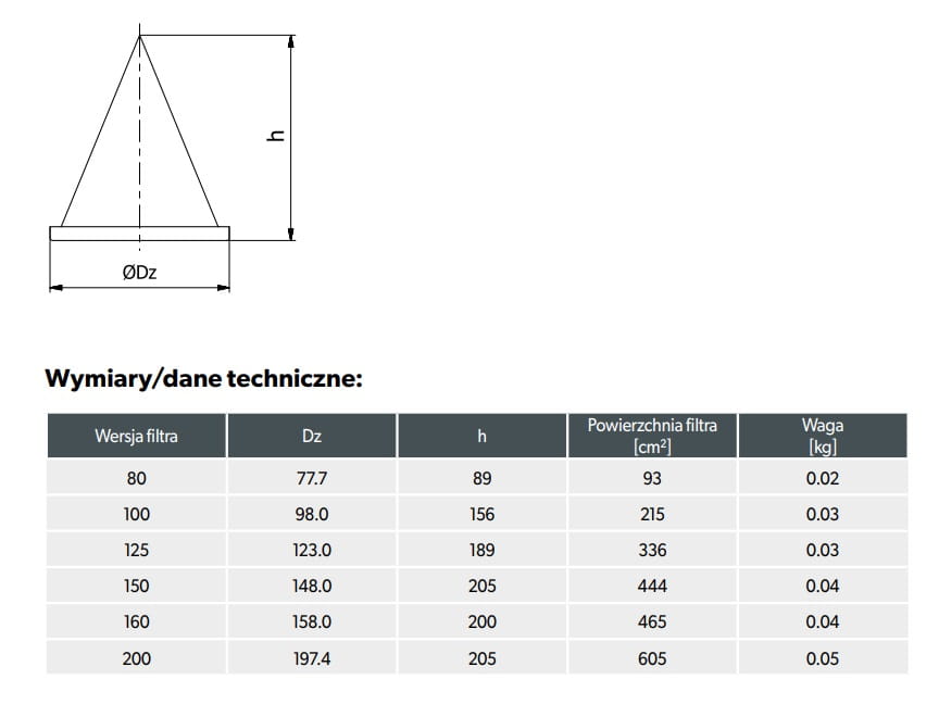 Filtr stożkowy FS-160-SET do anemostatów ASV i ASKV Darco