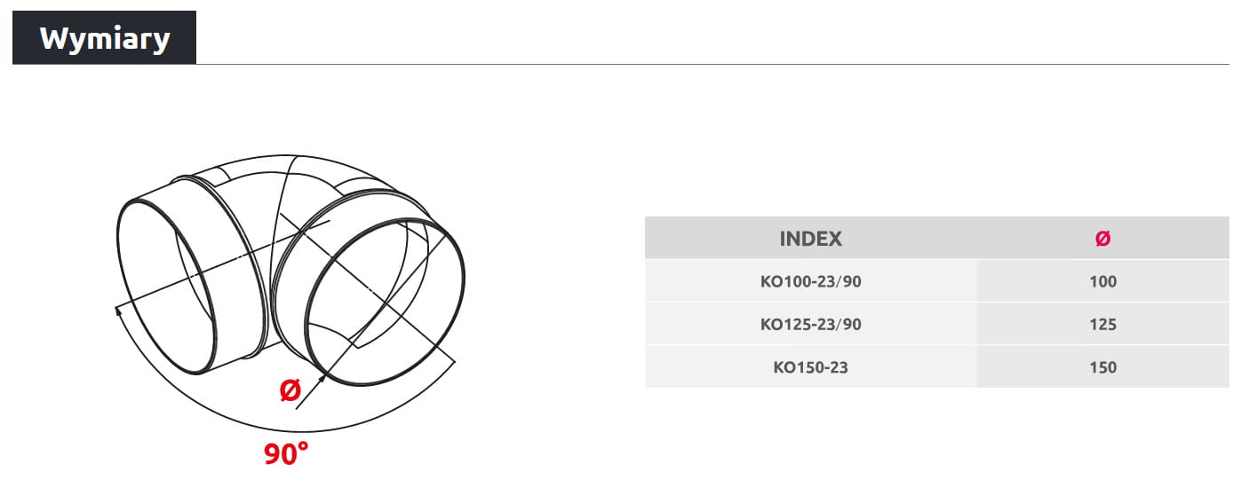 Kolano do kanałów wentylacyjnych okrągłych 90 st. fi 125 ABS Awenta KO125-23/90