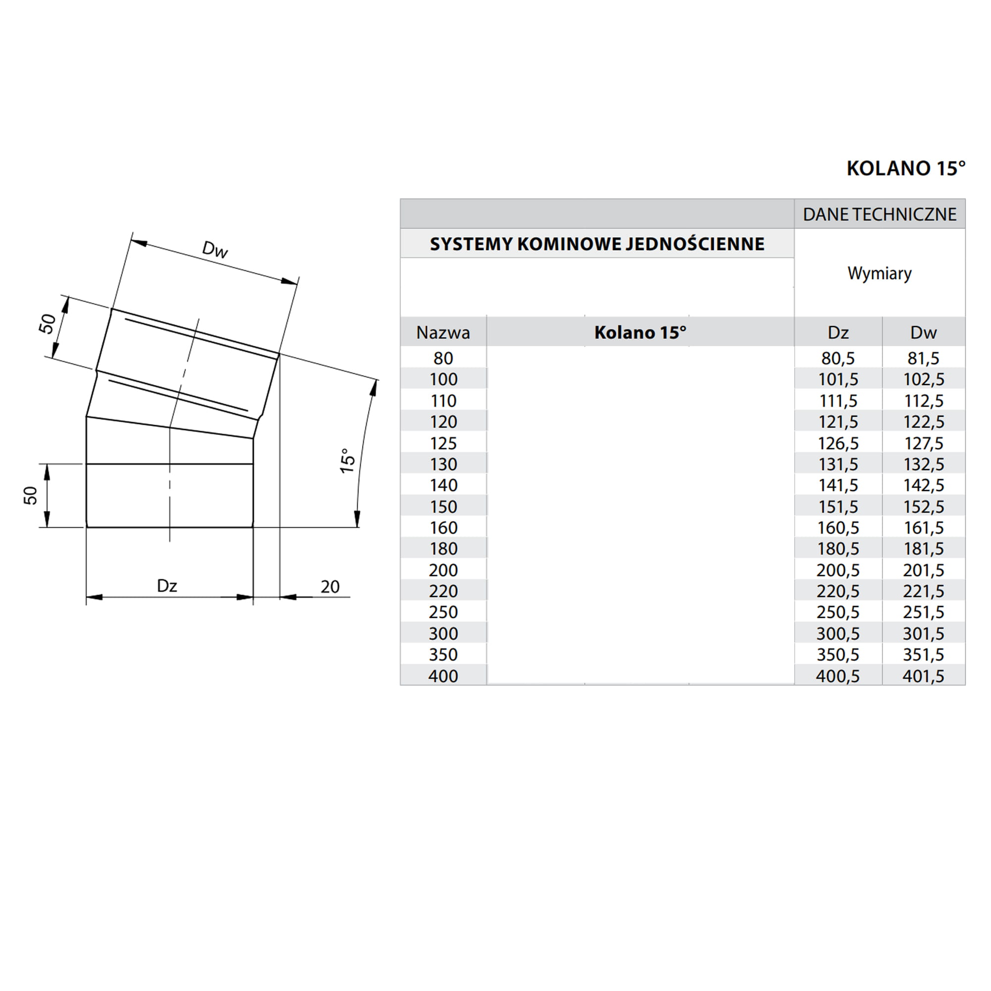 Kolano kominowe wykonane z blachy żaroodpornej przeznaczone jest do podłączenia pieca opalanego gazem, olejem opałowym, drewnem, ekologicznym paliwem stałym oraz węglem z wkładem kominowym pod kątem 15°.