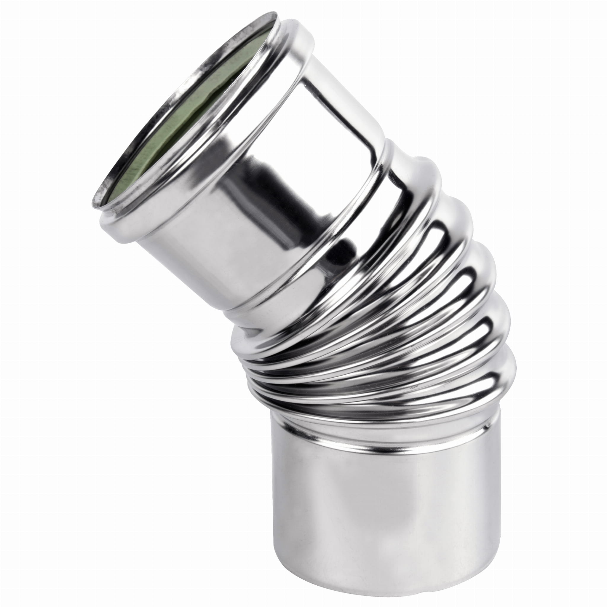 Kolano kominowe wykonane z blachy kwasoodpornej przeznaczone jest do podłączenia pieca opalanego gazem lub olejem opałowym z wkładem kominowym pod kątem 45°.
