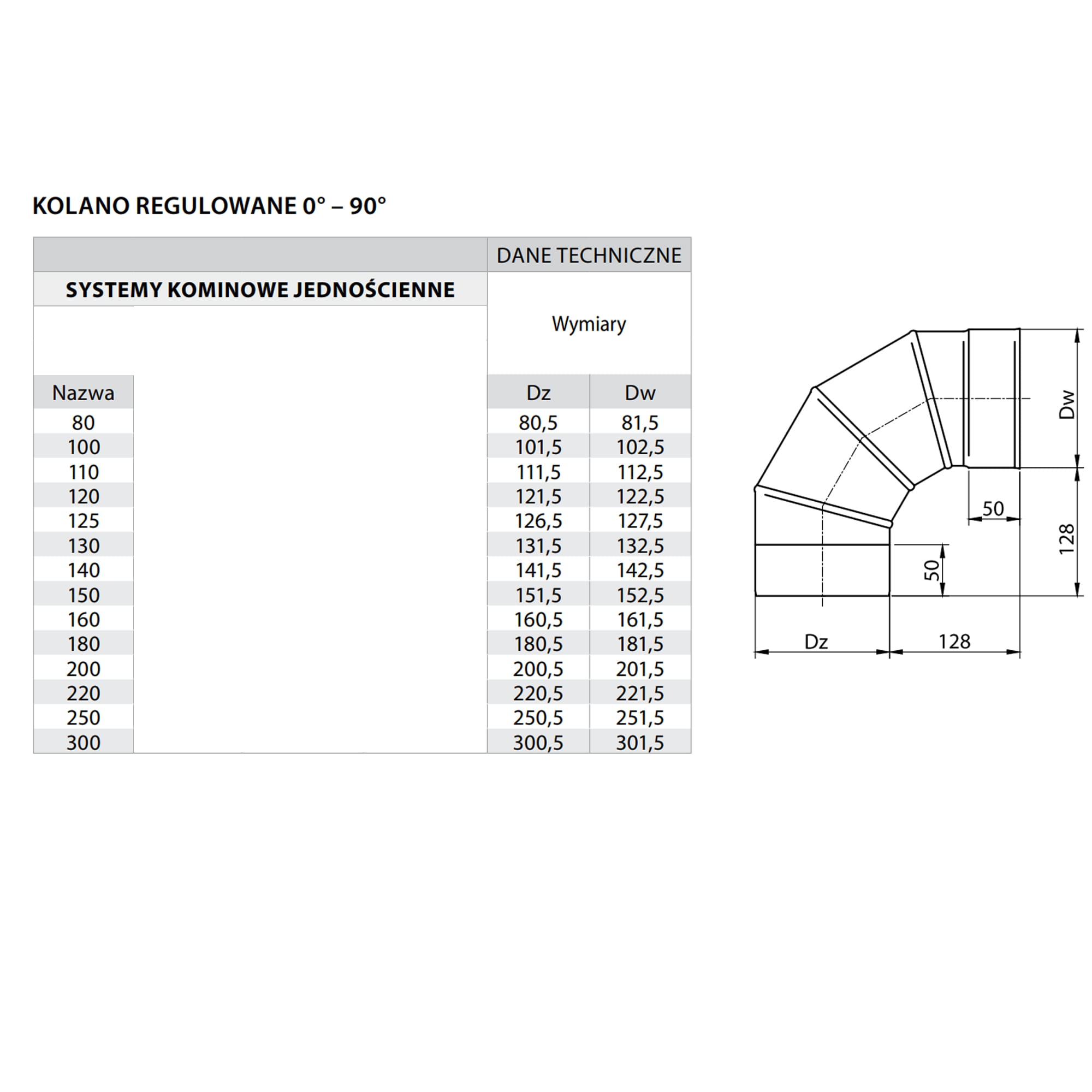 Kolano kominowe wykonane z blachy żaroodpornej przeznaczone jest do podłączenia pieca opalanego gazem, olejem opałowym, drewnem, ekologicznym paliwem stałym oraz węglem z wkładem kominowym pod kątem 0°-90°.
