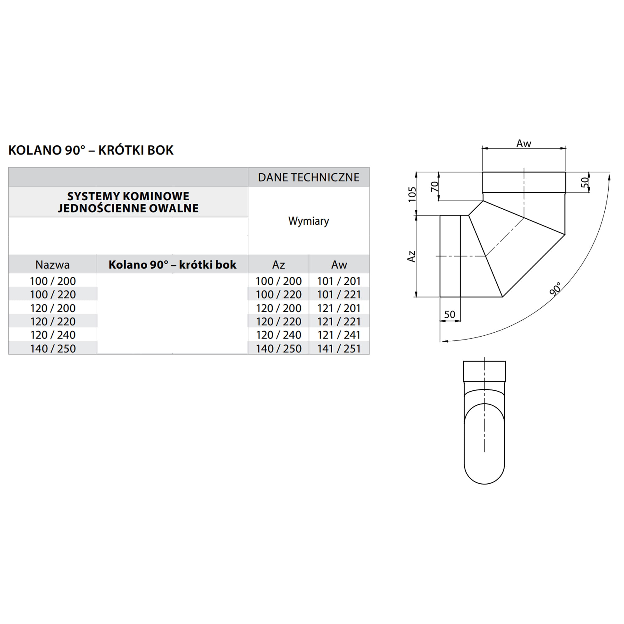 Kolano kominowe owalne wykonane z blachy żaroodpornej przeznaczone jest do podłączenia pieca opalanego gazem, olejem opałowym, drewnem, ekologicznym paliwem stałym oraz węglem z wkładem kominowym pod kątem 90°.