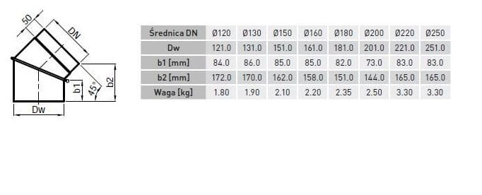 Kolano nastawne czarne 45° fi 250 Darco SPK