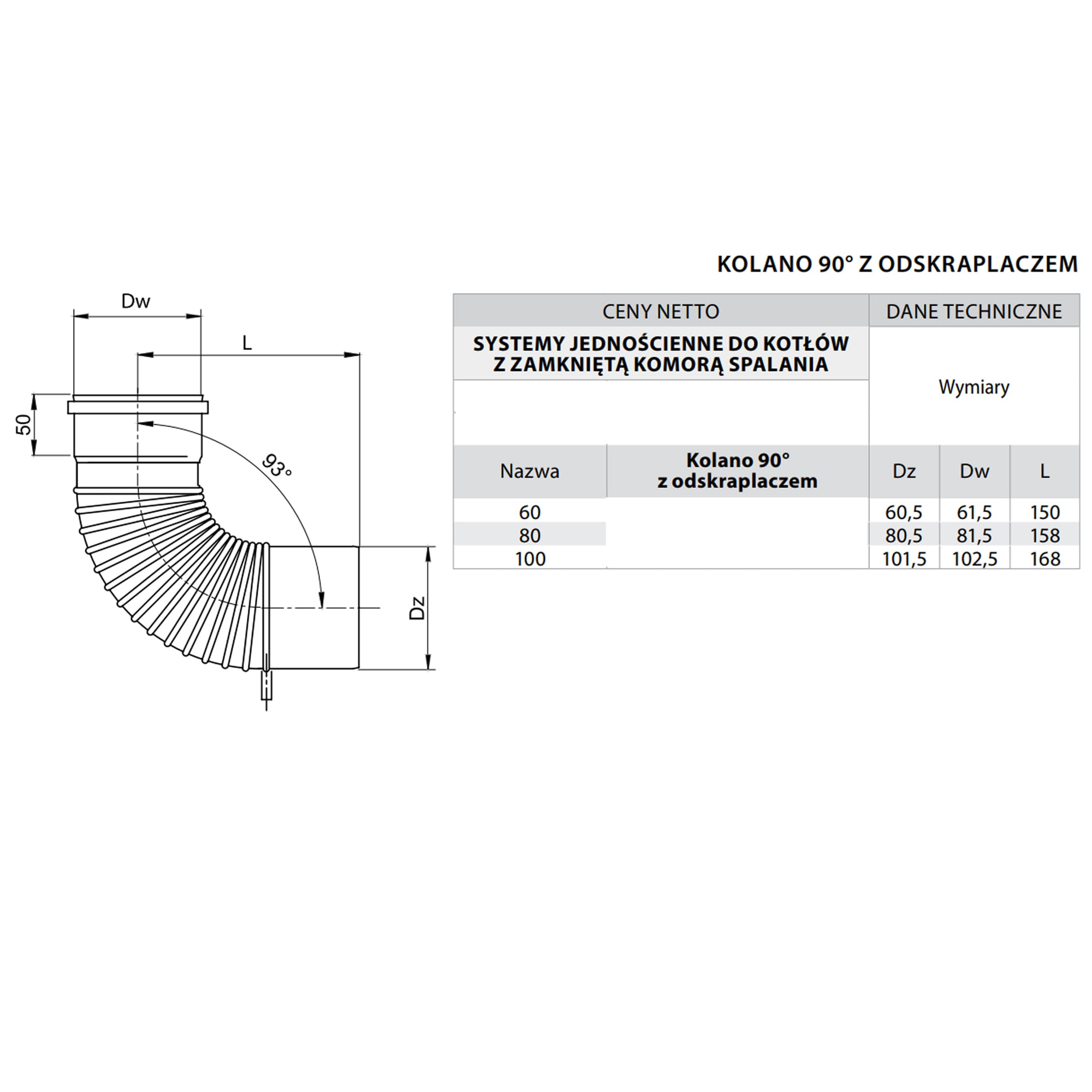 Kolano z odskraplaczem Turbo 90° fi 100 kwasoodporne