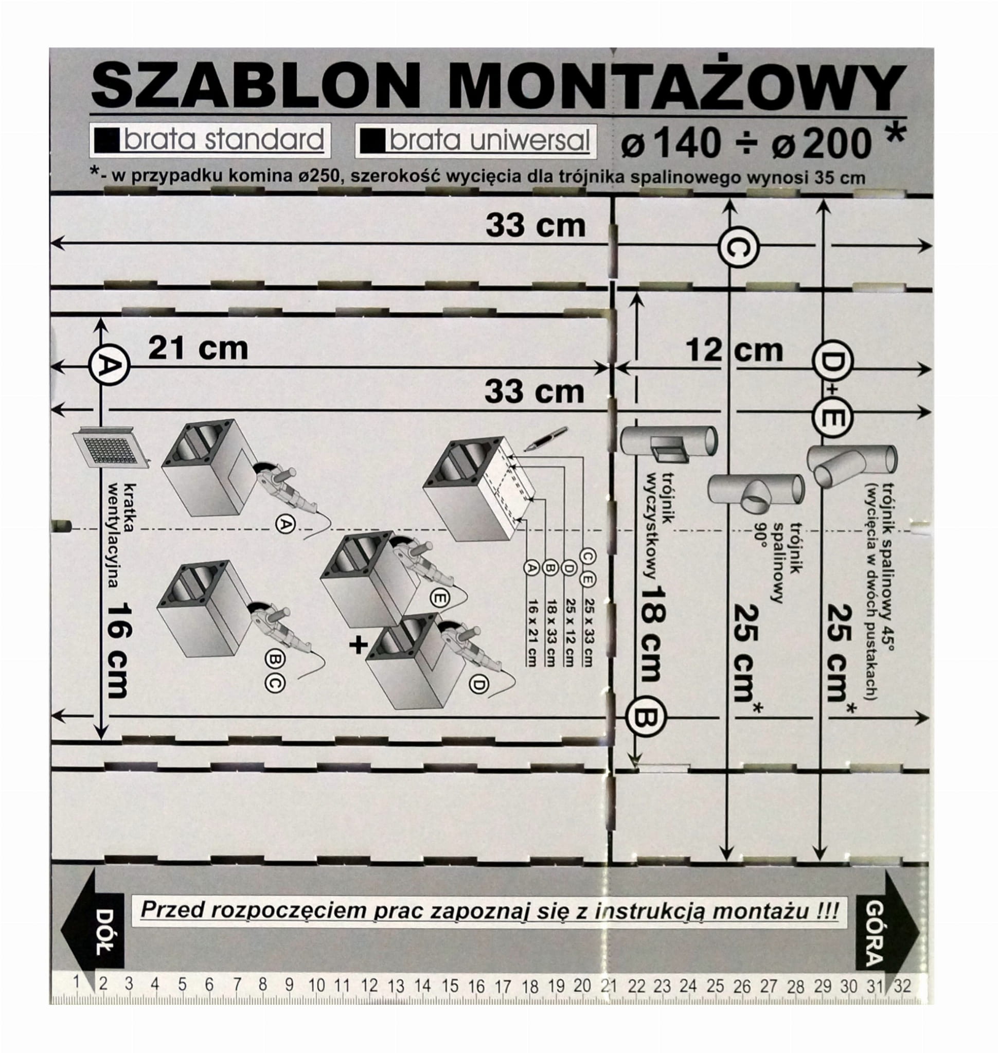 - Szablon montażowy kartonowy