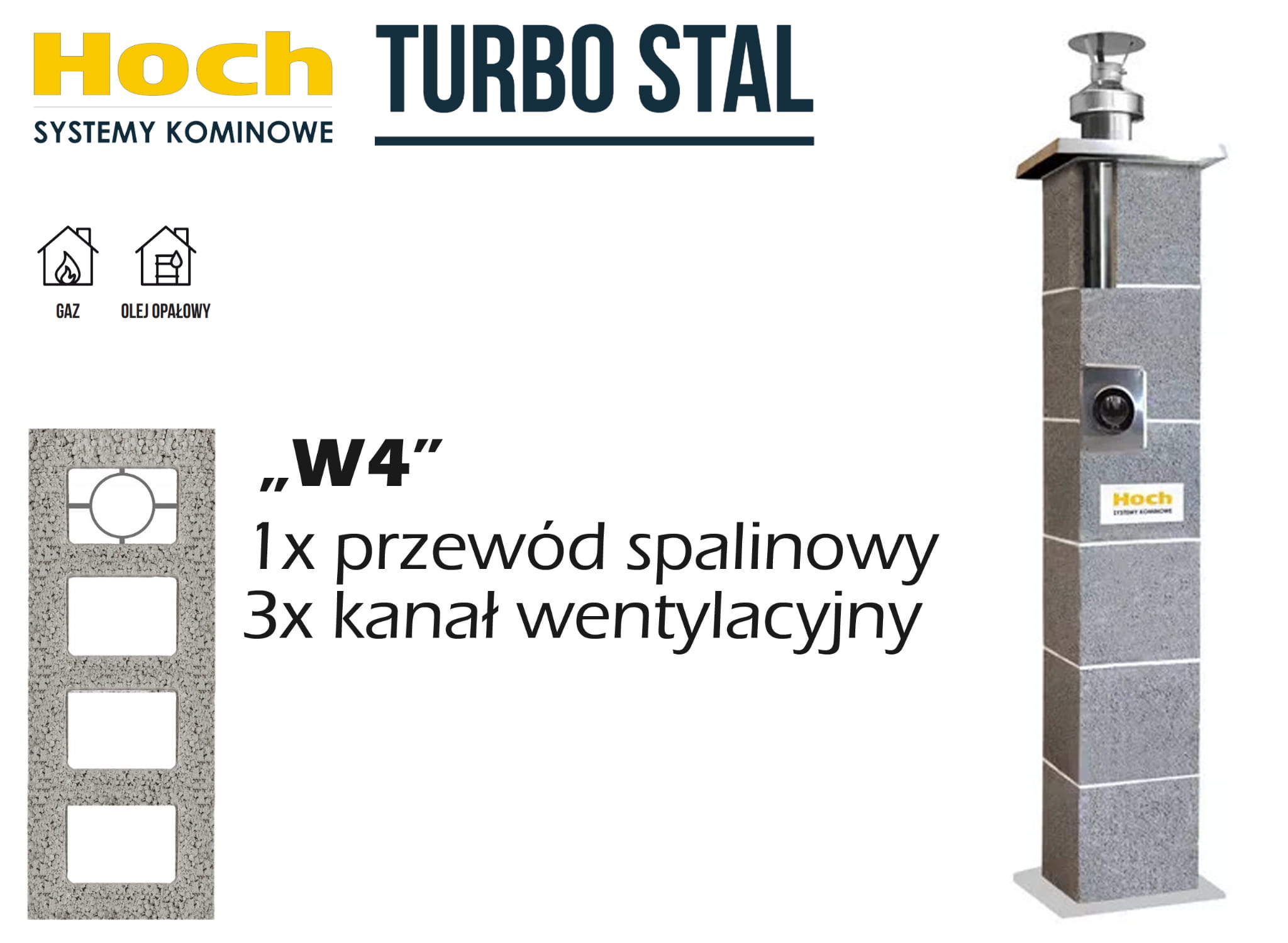 Komin systemowy HOCH Turbo Stal W4 fi 80 9 m