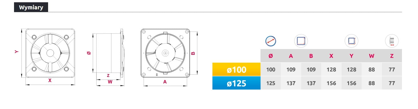 Korpus wentylatora łazienkowego KWT Turbo charakteryzują się zwiększona wydajnością wymiany powietrza do 215 m3/h.
