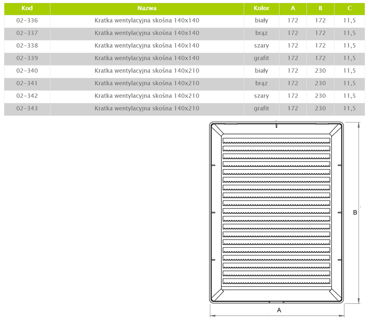 Kratka wentylacyjna stosowana jako kratka wentylacyjna nawiewno-wywiewna do pomieszczeń wewnątrz i na zewnątrz budynku.