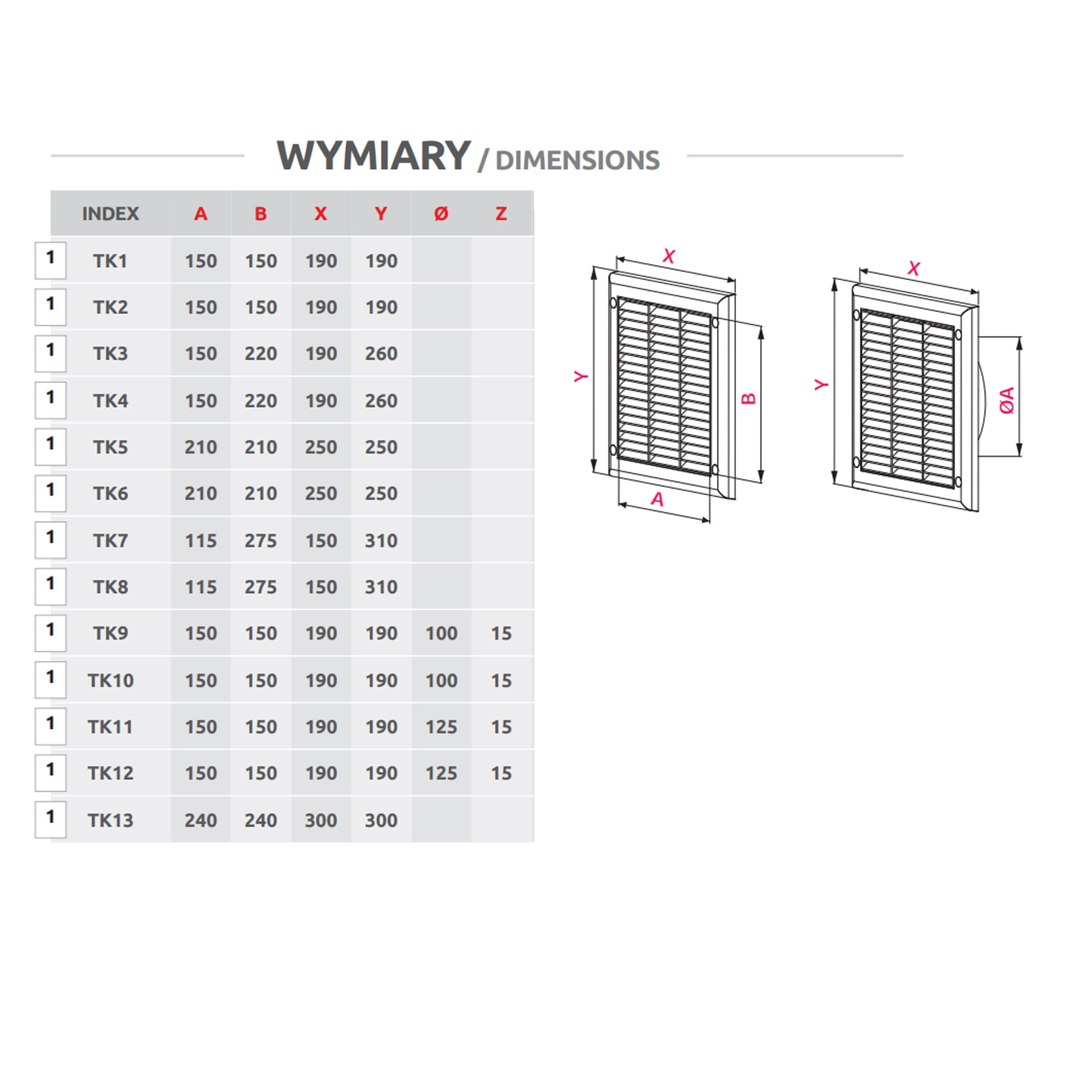 Kratka wentylacyjna stosowana jest do estetycznego maskowania oraz zabezpieczania wlotów i wylotów z kanałów wentylacyjnych, siatka zapobiega przedostawaniu się owadów.