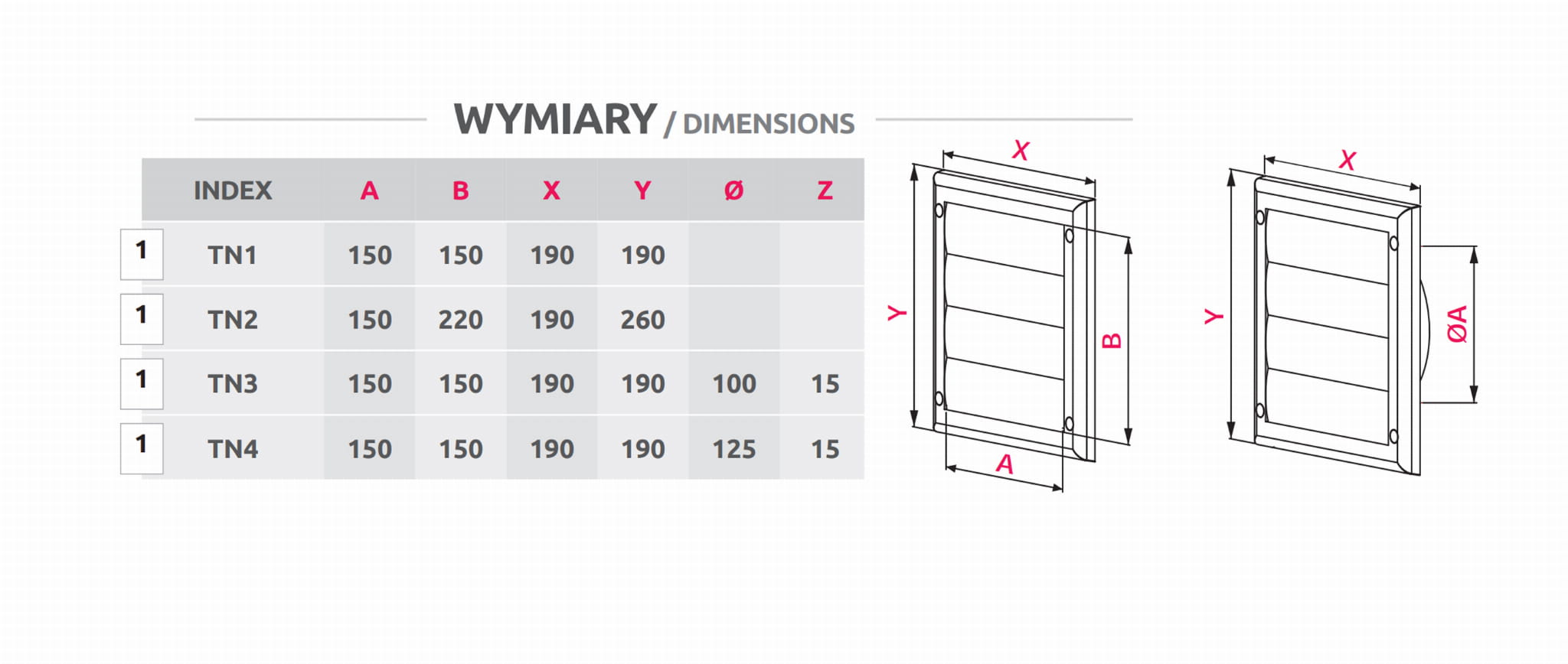 Tego typu kratki przeznaczone są do maskowania oraz zabezpieczania wylotów kanałów i przewodów wentylacyjnych na zewnątrz budynku, wyposażone są w żaluzję umożliwiającą przepływ powietrza tylko w jednym kierunku.