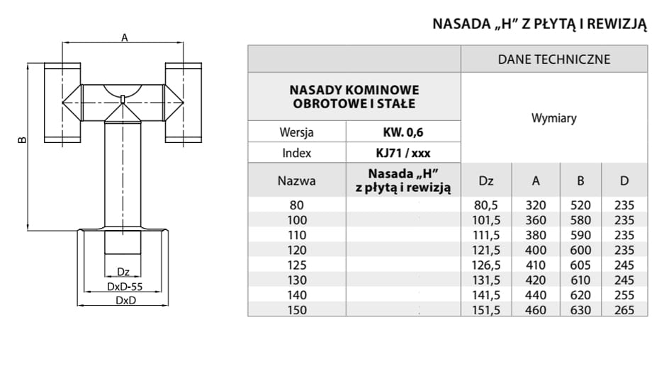 Nasada kominowa typu H wykonana z blachy kwasoodpornej przeznaczona jest do wzmocnienia ciągu kominowego oraz ochrony przed niekorzystnymi warunkami atmosferycznymi takimi jak wiatr, deszcz lub śnieg.