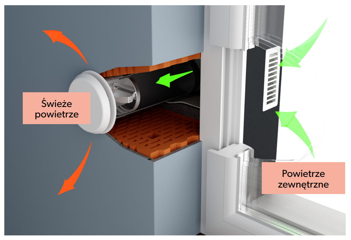 - Zapewnia regulowany dopływ świeżego powietrza bez konieczności otwierania okien