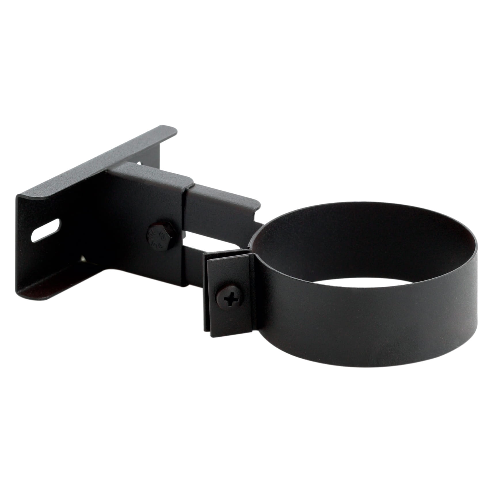 Obejma posiada regulację umożliwiającą dopasowanie odległości przewodu kominowego od ściany budynku, wykonana w całości ze stali czarnej.
