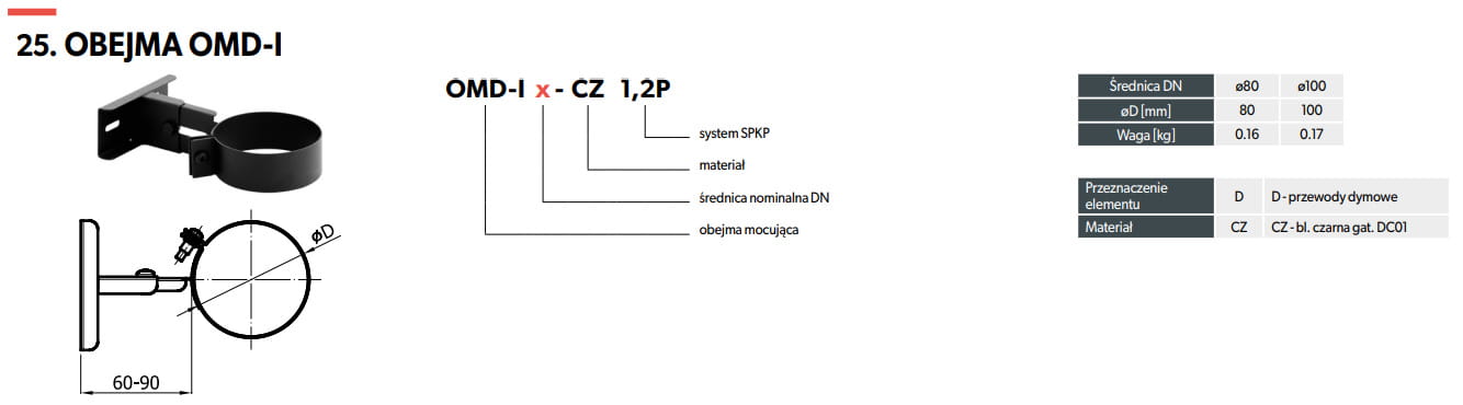Obejma mocująca regulowana 60-90 fi 100 Darco SPKP
