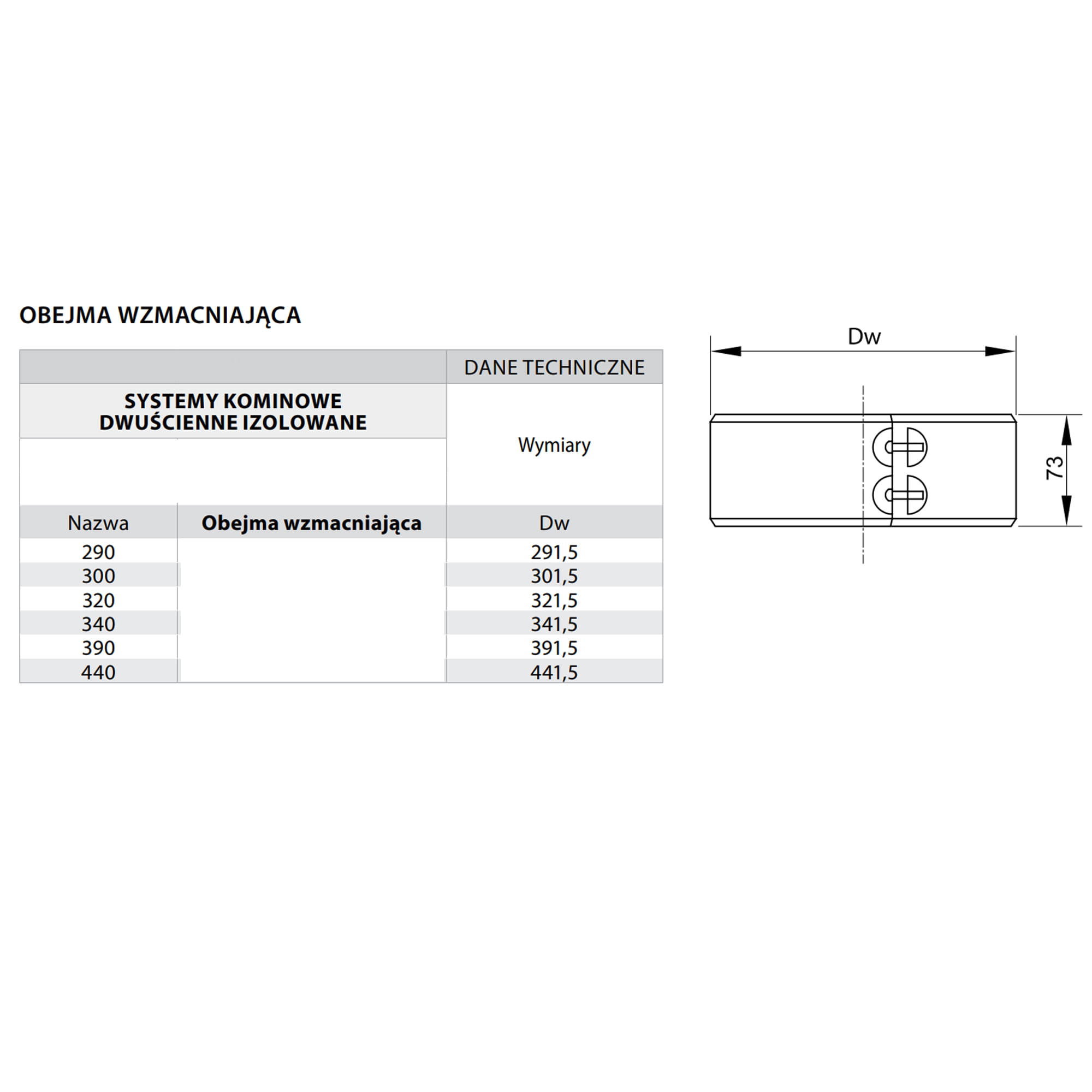 Obejma wzmacniająca wykonana z blachy żaroodpornej stosuje się w przypadku konieczności wzmocnienia połączeń elementów systemu kominowego.