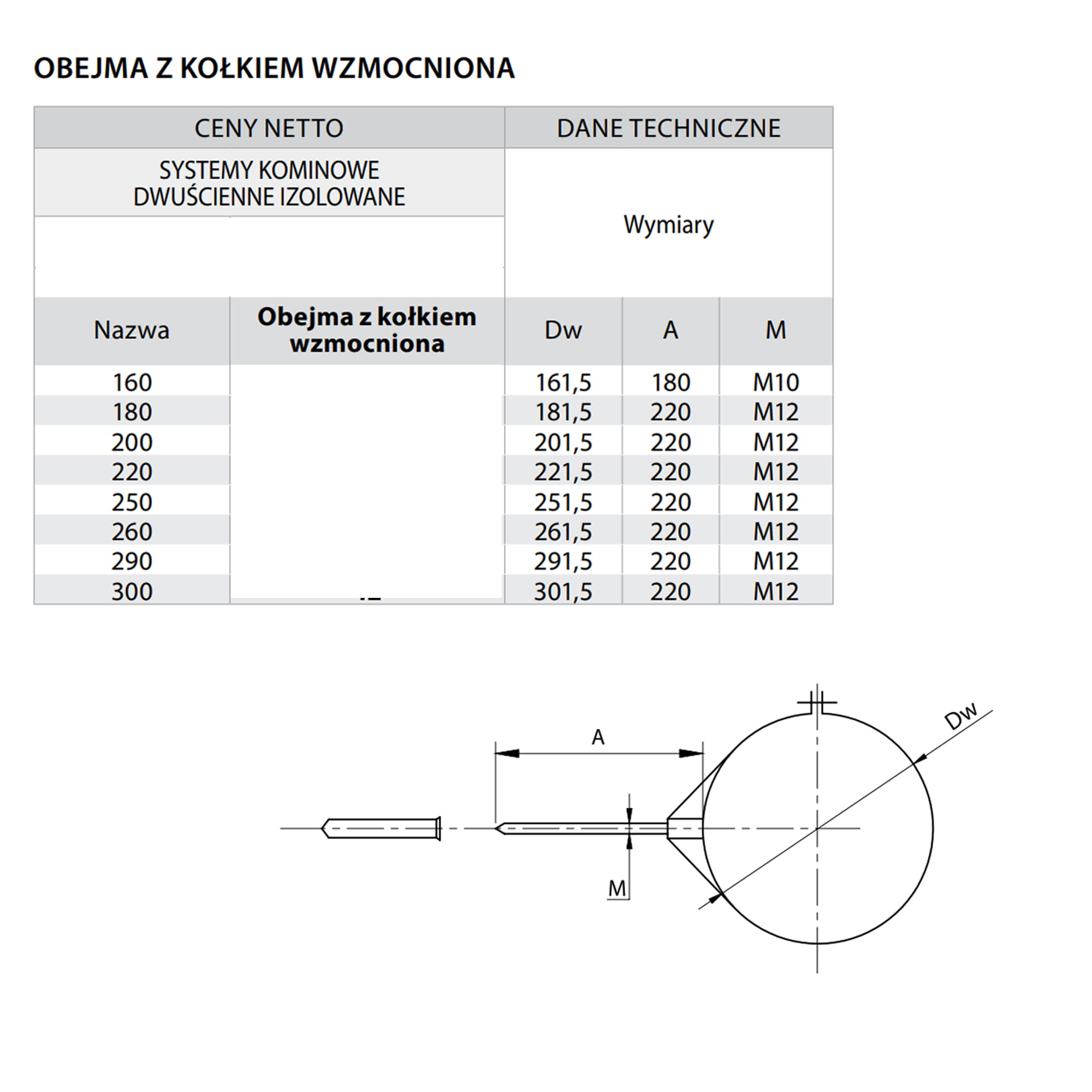Obejma wzmacniająca wykonana z blachy kwasoodpornej przeznaczona jest do montażu komina na ścianie.