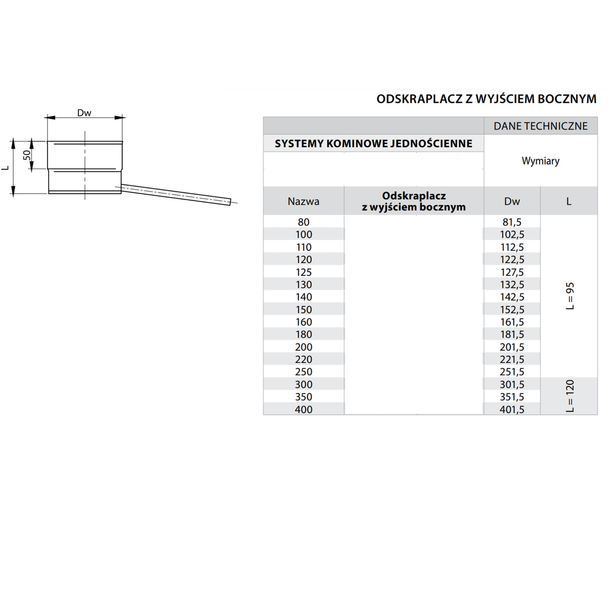 Odskraplacz kominowy z wyjściem bocznym fi 130 żaroodporny