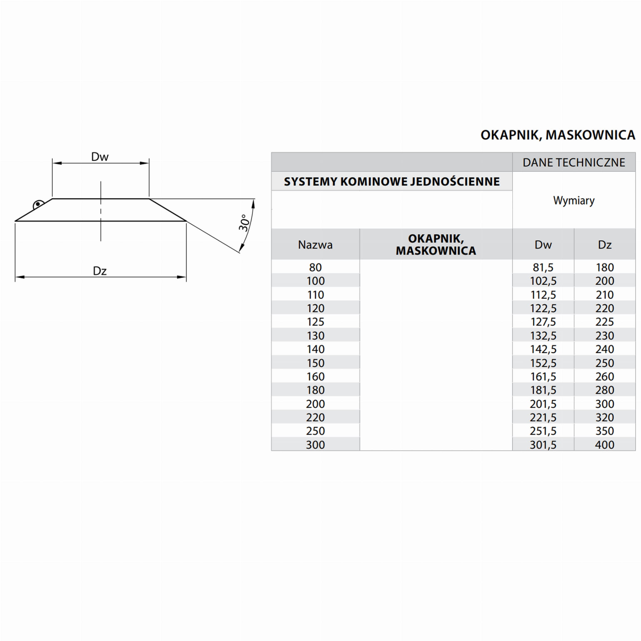 Okapnik wykonany z blachy kwasoodpornej przeznaczony jest do zabezpieczenia otworu wokół komina w przepuście dachowym przed niekorzystnymi warunkami atmosferycznymi oraz zakrywa- maskuje estetycznie przestrzeń między powierzchnią komina a ścianą.