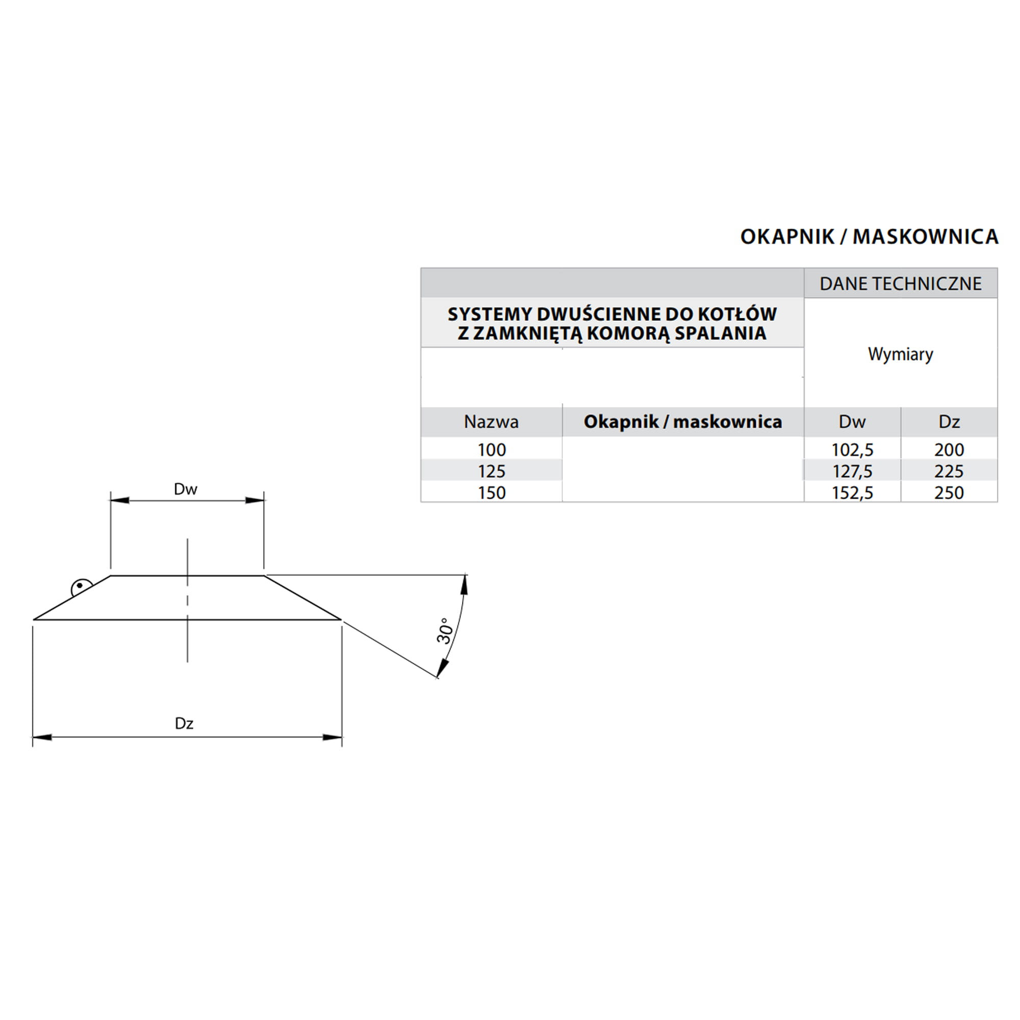 Okapnik wykonany z blachy kwasoodpornej przeznaczony jest do zabezpieczenia otworu wokół komina w przepuście dachowym przed niekorzystnymi warunkami atmosferycznymi oraz zakrywa-maskuje estetycznie przestrzeń między powierzchnią komina a ścianą.