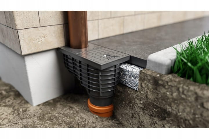 - Umożliwia sprawne i bezpieczne odprowadzanie wody deszczowej z systemu rynnowego