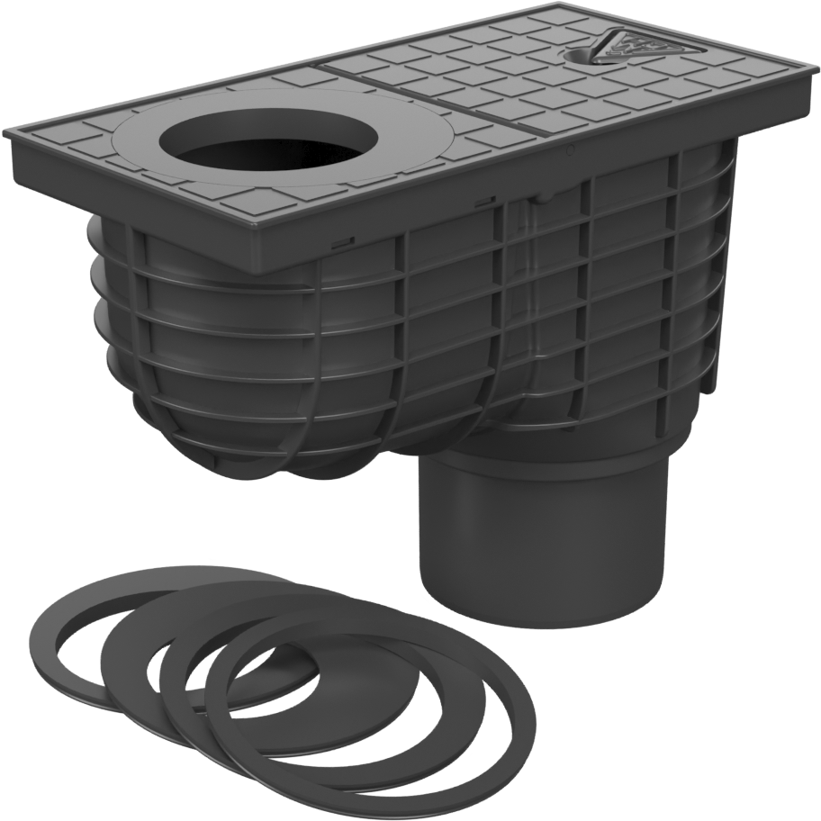 Zastosowanie dolnego odpływu oraz dołączonych redukcji umożliwia precyzyjne dopasowanie osadnika do różnych średnic rur spustowych oraz systemów kanalizacji deszczowej. Przemyślana konstrukcja ułatwia montaż oraz zapewnia wygodną eksploatację i łatwy dostęp do elementów wymagających okresowego czyszczenia.