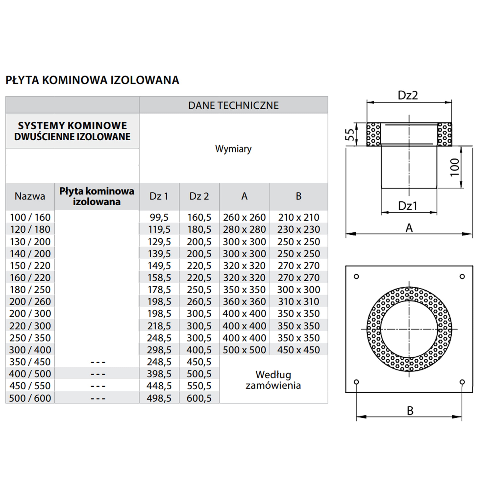 Płyta kominowa wykonana z blachy kwasoodpornej przeznaczona jest do zabezpieczenia przestrzeni między wkładem kominowym a wnętrzem komina, pełni również rolę stabilizatora.