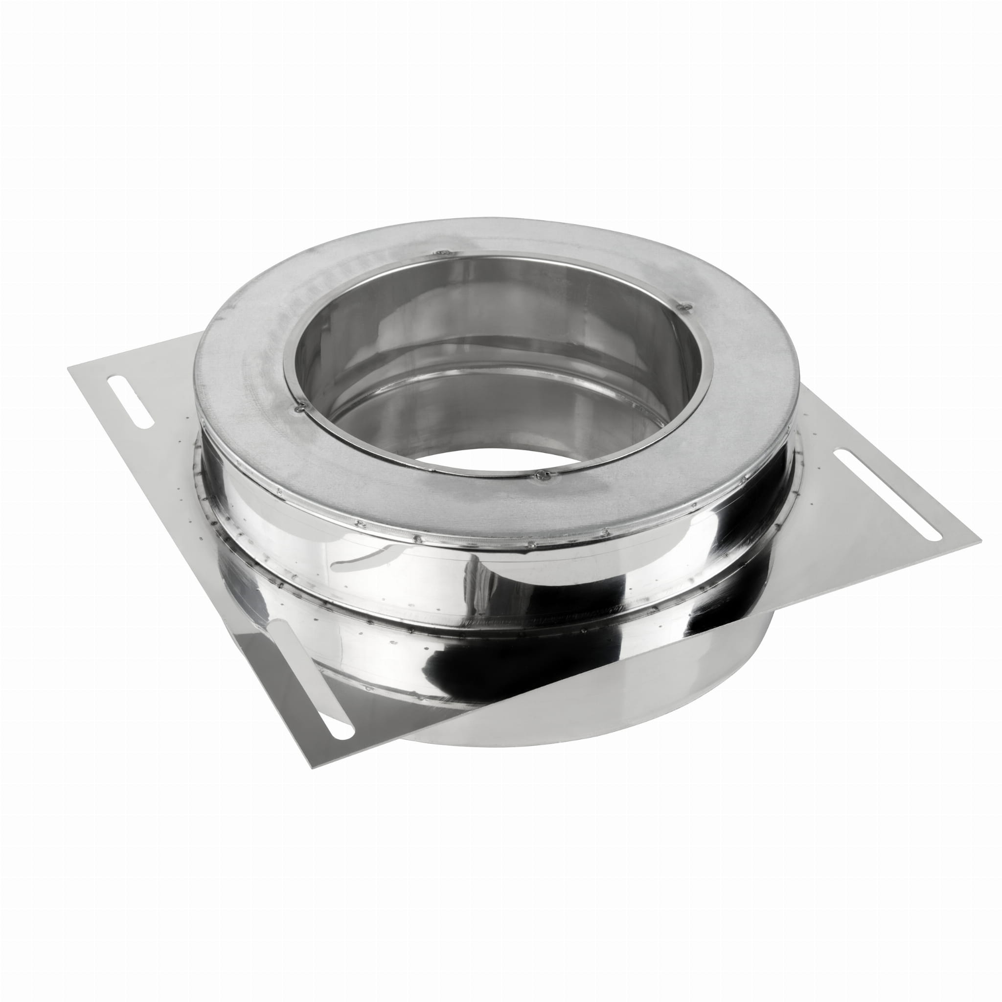 Podpora przejściowa wykonana z blachy kwasoodpornej swoje zastosowanie znajduje gdy zachodzi potrzeba budowy wyższego komina lub przejścia przez strop.