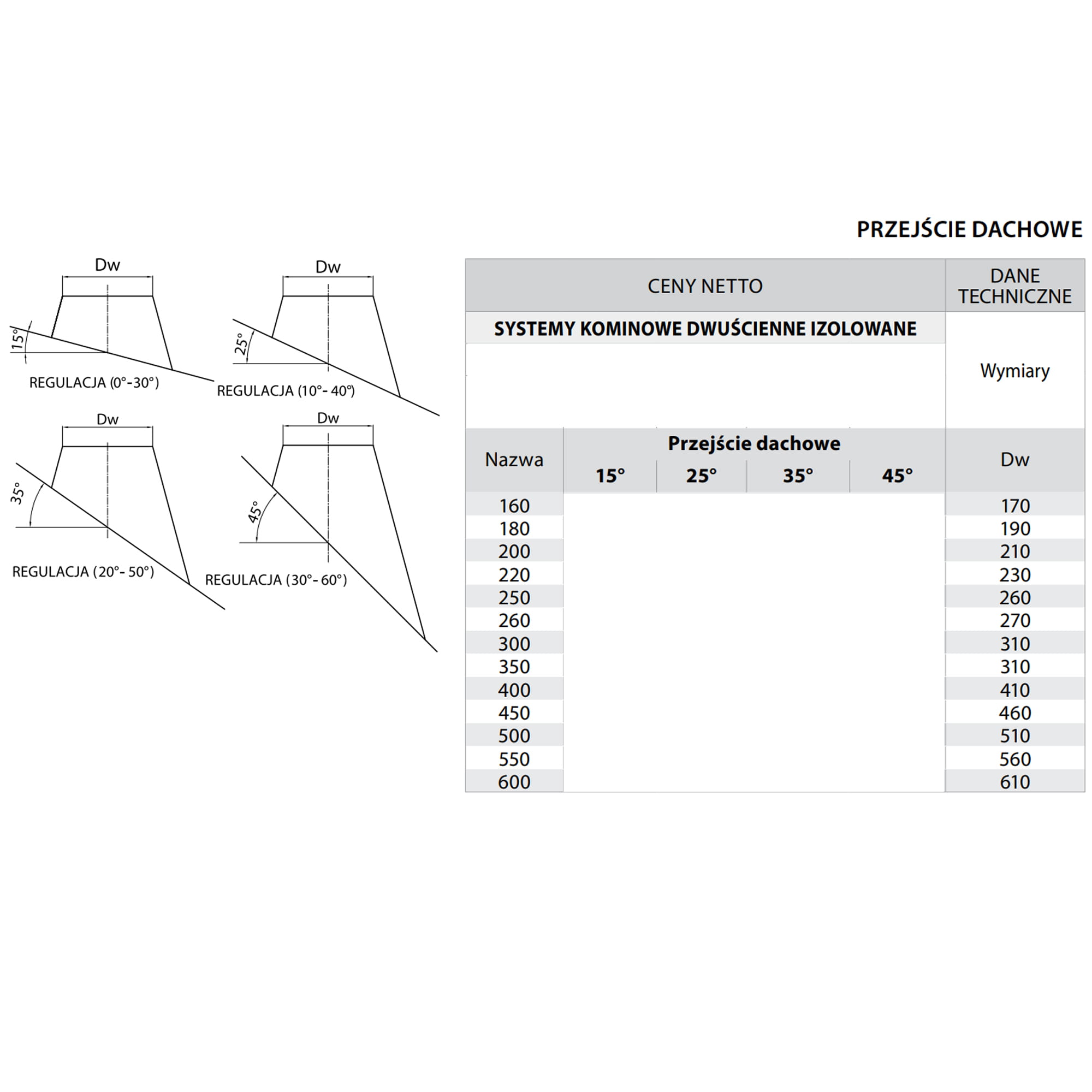 Przejście dachowe wykonane z blachy kwasoodpornej przeznaczone jest do przeprowadzenia przewodu kominowego przez płaszczyznę dachową o kącie 0-30°. Przy składaniu zamówienia proszę wybrać odpowiedni kąt nachylenia.