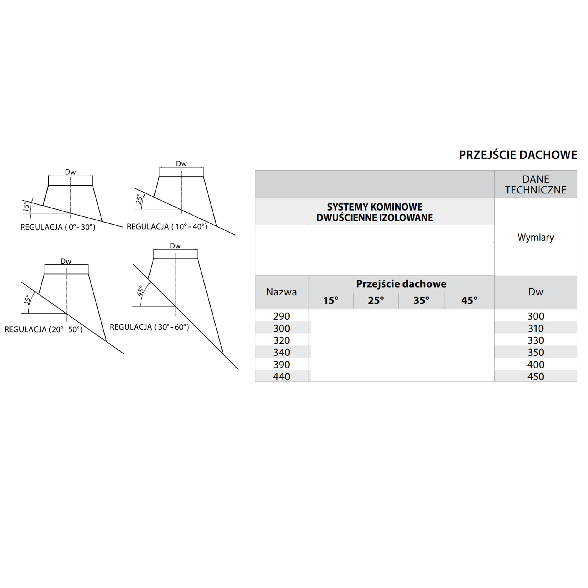 Przejście dachowe wykonane z blachy żaroodpornej przeznaczone jest do przeprowadzenia przewodu kominowego przez płaszczyznę dachową o kącie 15°, 25°, 35° oraz 45°. Przy składaniu zamówienia proszę wybrać odpowiedni kąt nachylenia.