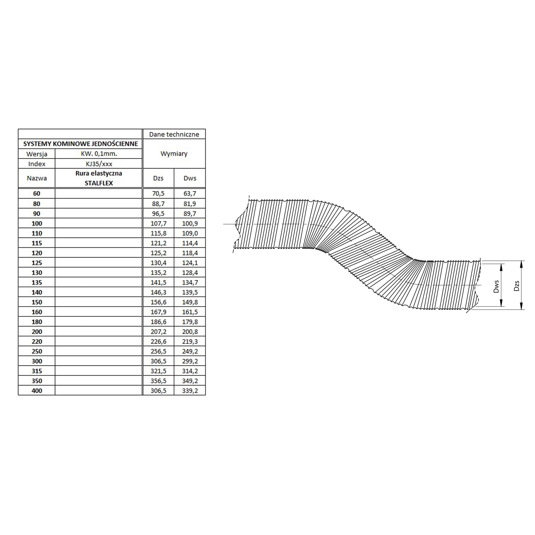 Rura elastyczna wykonana z blachy kwasoodpornej przeznaczona jest do budowy wkładu kominowego o żądanej długości do urządzeń grzewczych z otwartą komorą spalania opalanych gazem lub olejem opałowym, swoje zastosowanie znajdzie w sytuacji gdy szacht kominowy jest na tyle krzywy, że nie ma możliwości montażu sztywnego wkładu w postaci rur prostych.