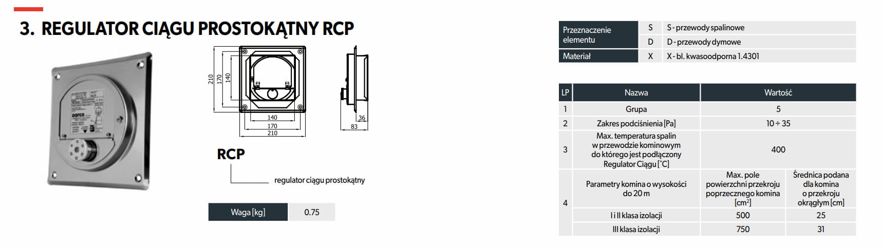 Regulator ciągu kominowego służy do stabilizacji i zmniejszenia zbyt dużego podciśnienia w przewodach kominowych spalinowych, dymowych i wentylacyjnych.