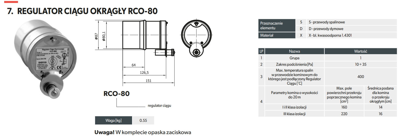 Regulator ciągu kominowego fi 80 Darco RCO-80