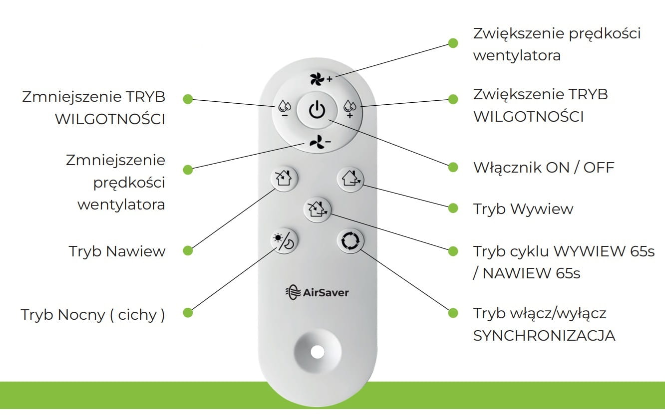 AirSaver został wyposażony w możliwość zsynchronizowania do 8 urządzeń sterowanych bezprzewodowo za pomocą pilota zdalnego sterowania dołączonego do zestawu lub dedykowanej aplikacja na smartfona. Urządzenie posiada również czujnik wilgotności umożliwiający
