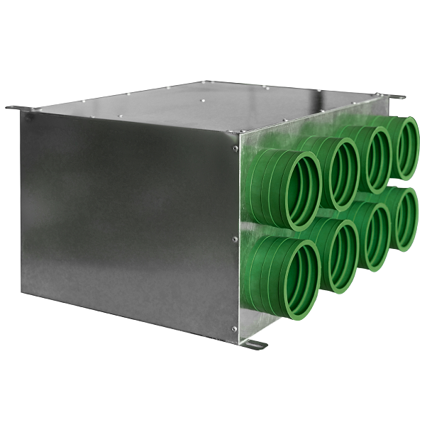 Rozdzielacz rurowy sufitowo-ścienny wykonana z wysokiej jakości blachy ocynkowanej przeznaczona jest do łatwego rozprowadzenia powietrza po całym budynku z jednego miejsca.