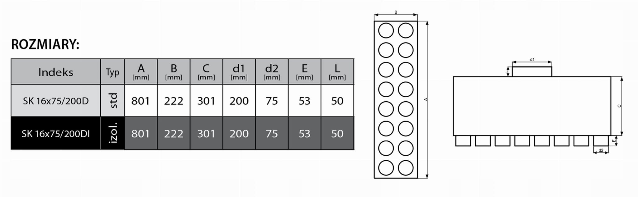 Rozdzielacz rurowy dwurzędowy szesnasto-króćcowy SK 16x75/200 ocynkowany