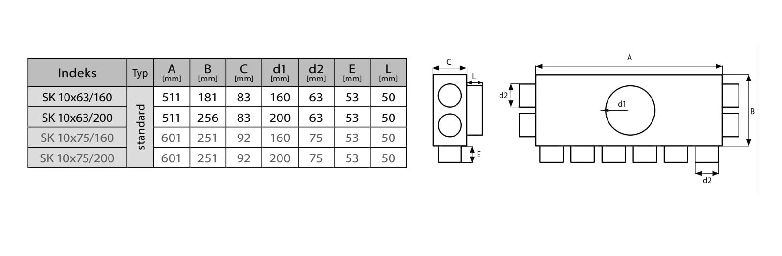 Rozdzielacz rurowy dziesięcio-króćcowy SKPK 10x75/160