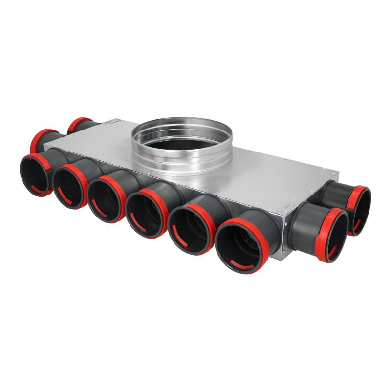 Rozdzielacz rurowy sufitowo-ścienny wykonana z wysokiej jakości blachy ocynkowanej przeznaczona jest do łatwego rozprowadzenia powietrza po całym budynku z jednego miejsca.