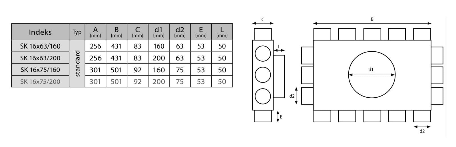 Rozdzielacz rurowy szesnasto-króćcowy SKPK 16x75/160
