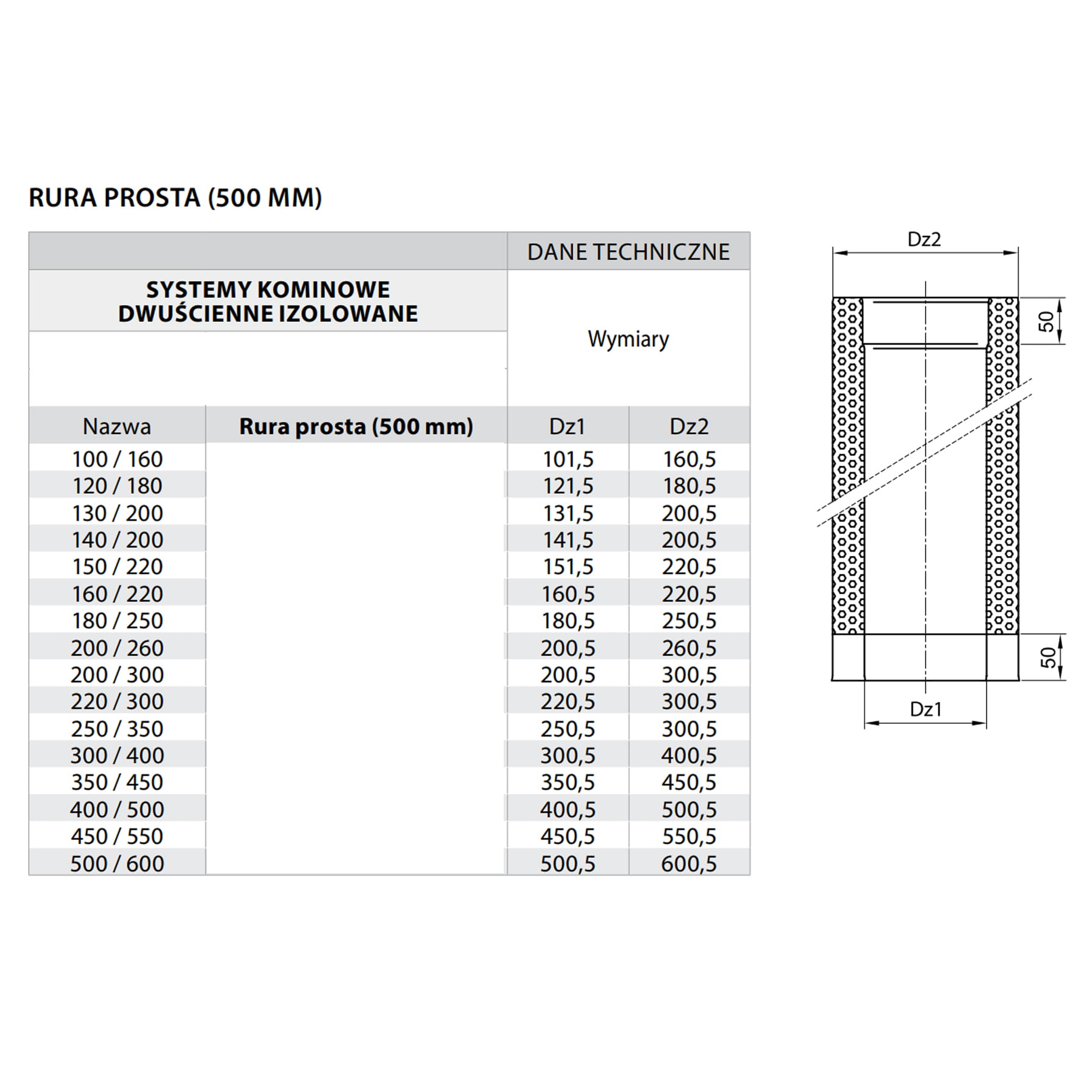 Rura kominowa izolowana fi 100/160 0,5 mb kwasoodporna